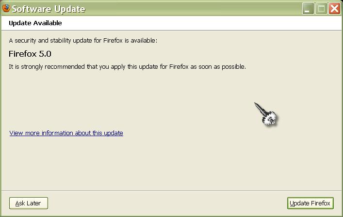 Me too "edmeister". I "downgraded" to Firefox 4.0.1 so that I could get my Google toolbar with the INSTANT translator back among other things. STOP SENDING THE MESSAGES/NOTIFICATIONS TO UPGRADE TO FIREFOX 5.0!!!!!! Had it, don't like it, don't want it. NUF SAID? Maybe if you folks can "play nice" with Google to allow their toolbar with all it's BETTER functions I may consider downloading Firefox 5.0.