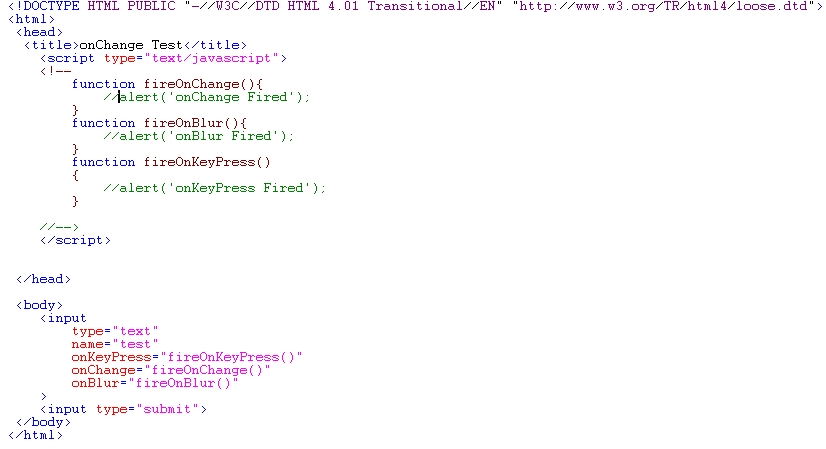 - If you comment out the one line of code in the "onKeyPress" function the tab key will fire the "onChange" event.