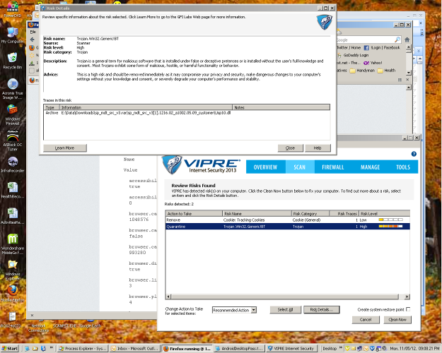 See pic below, it was a trogen from a file downloaded called sp_mdt_src_v3.rar. This was from a link that was redirected from a forum from a response by a user to find a particular file. Good job Vipre. Problem solved.!