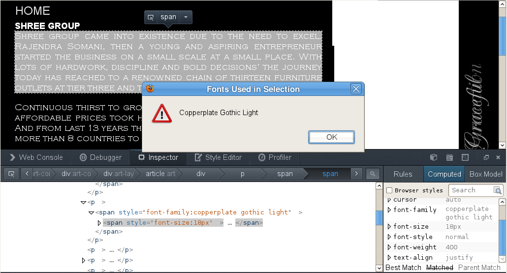 I am using the font Copperplate on my website. The font is appearing properly on all browsers except Firefox version 21.0. It is working even on lower versions of Firefox. What might be the issue?