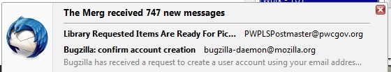 I am receiving new messages to one specific account (IMAP) and the TB new message notification pop-up appears above the system tray.