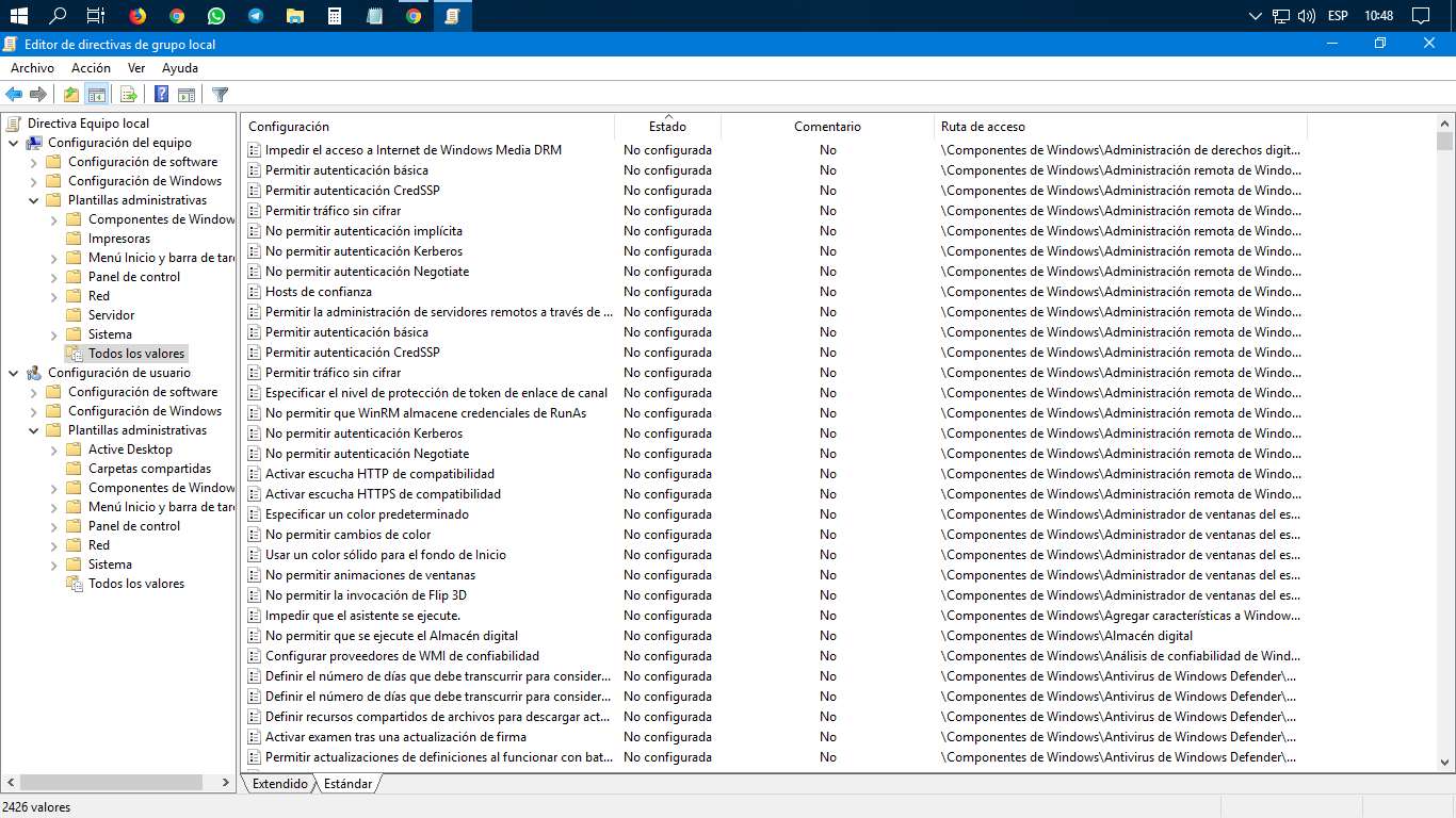 Ahora bien, respecto al link que me diste, uffs, tendrías que darme bien las pautas porque si quito una que no es me va a "dañar" otra cosa, son por lo que veo, todas las políticas de Windows.