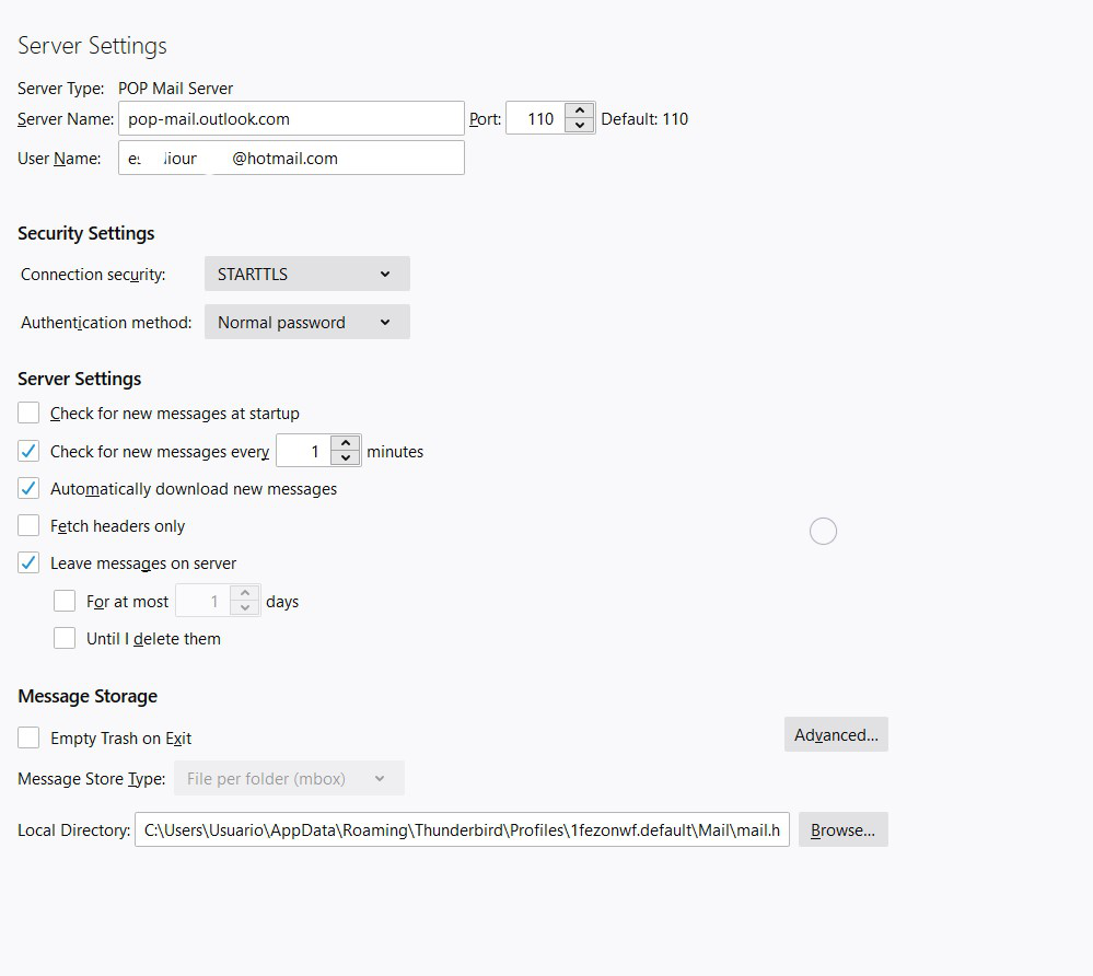 Buenos días Tengo instalado Thunderbird 78.3.2, y tengo el inconveniente que cuando descarga los correos, me los marca en el web mail, como leídos, lo cual perjudica a aquellos usuarios que usan este método para chequear, ya que no pueden saber cuales son los efectivamente leídos y lo que no, les adjunto una imagen de como tengo configurado el servidor pop. Desde ya muchísimas gracias