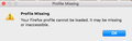 "Your Firefox profile cannot be loaded. It may be missing or inaccessible"