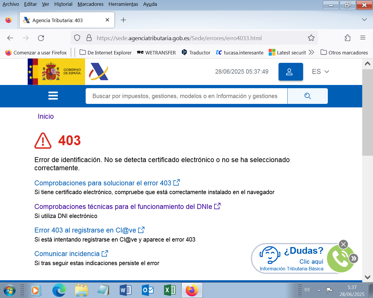 No he podido identificarme con mi DNIe ni con mi FNMT