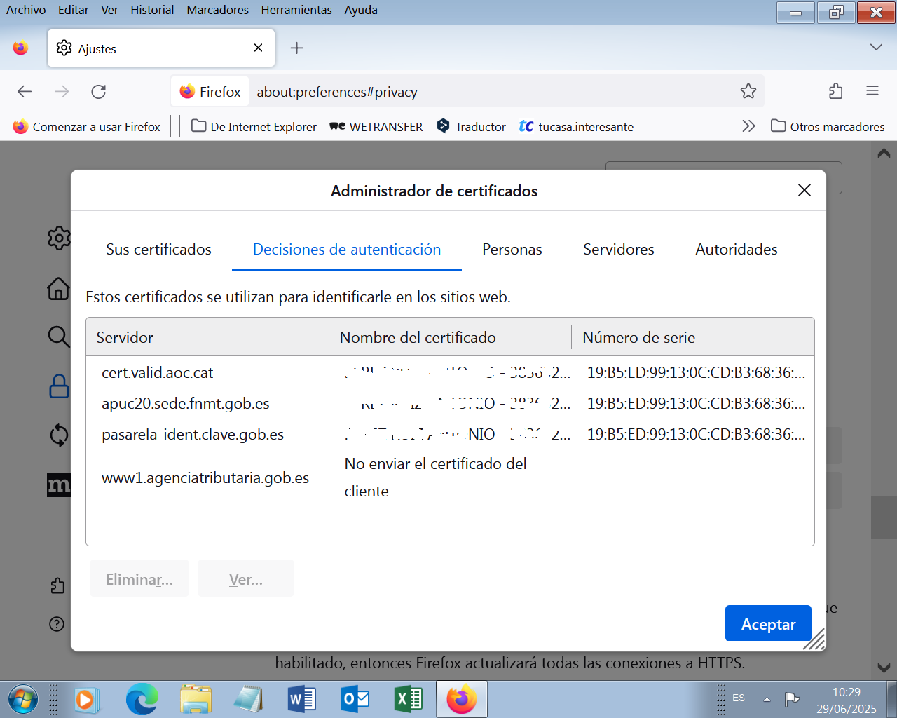 No he podido aceder a la web de la agencia tributaria. Ambos certificados son reconocidos por firefox. Sí he podido con Edge. ¿Por qué?