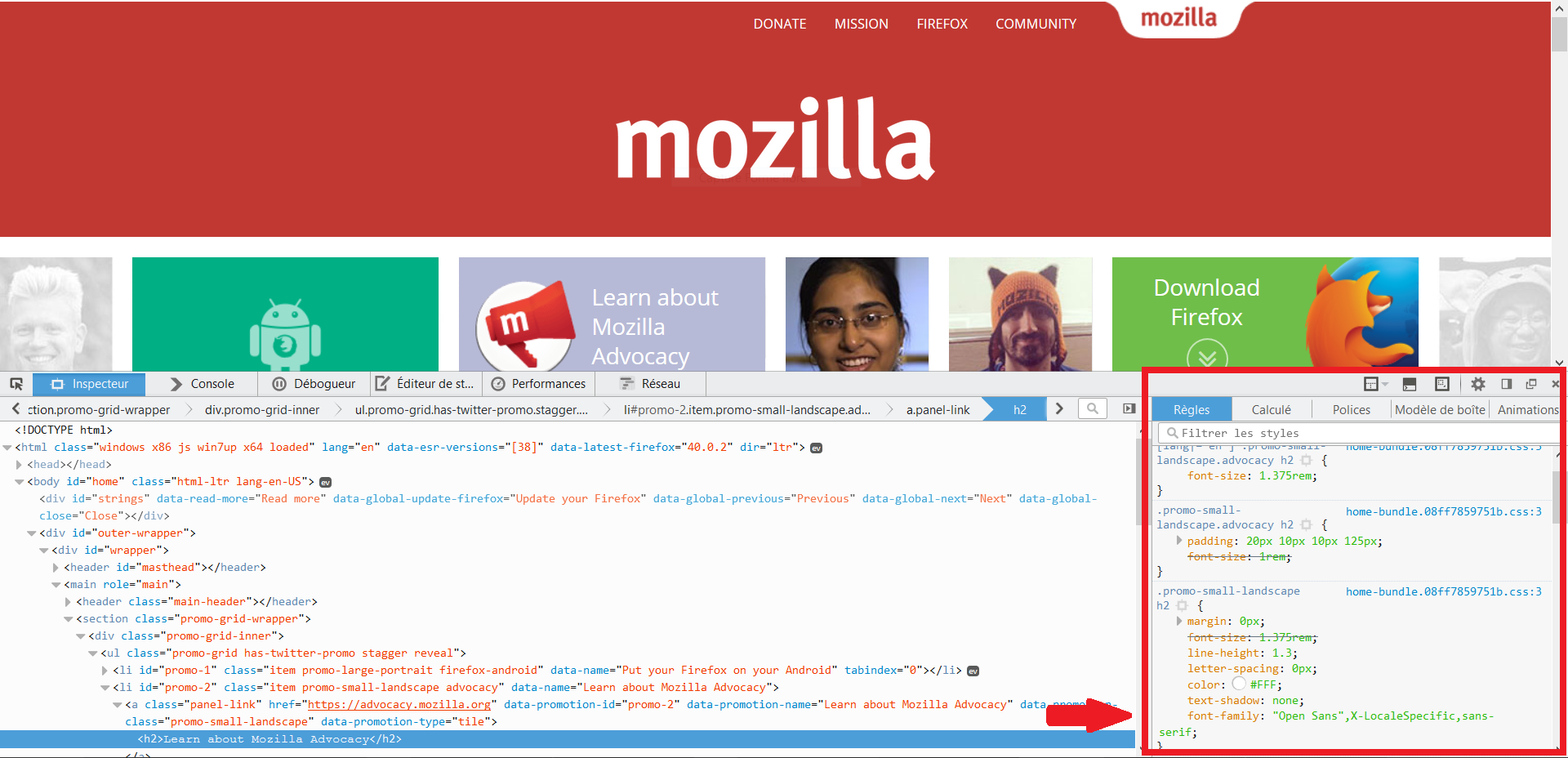 When you see an unwanted font, you can right-click on the text and click on Inspect Element. The Developer Tool panel is displayed.