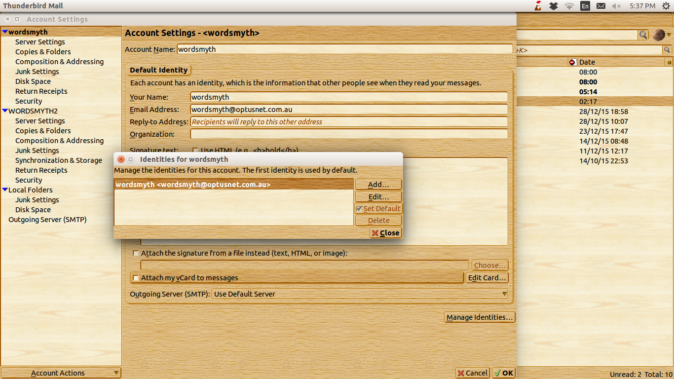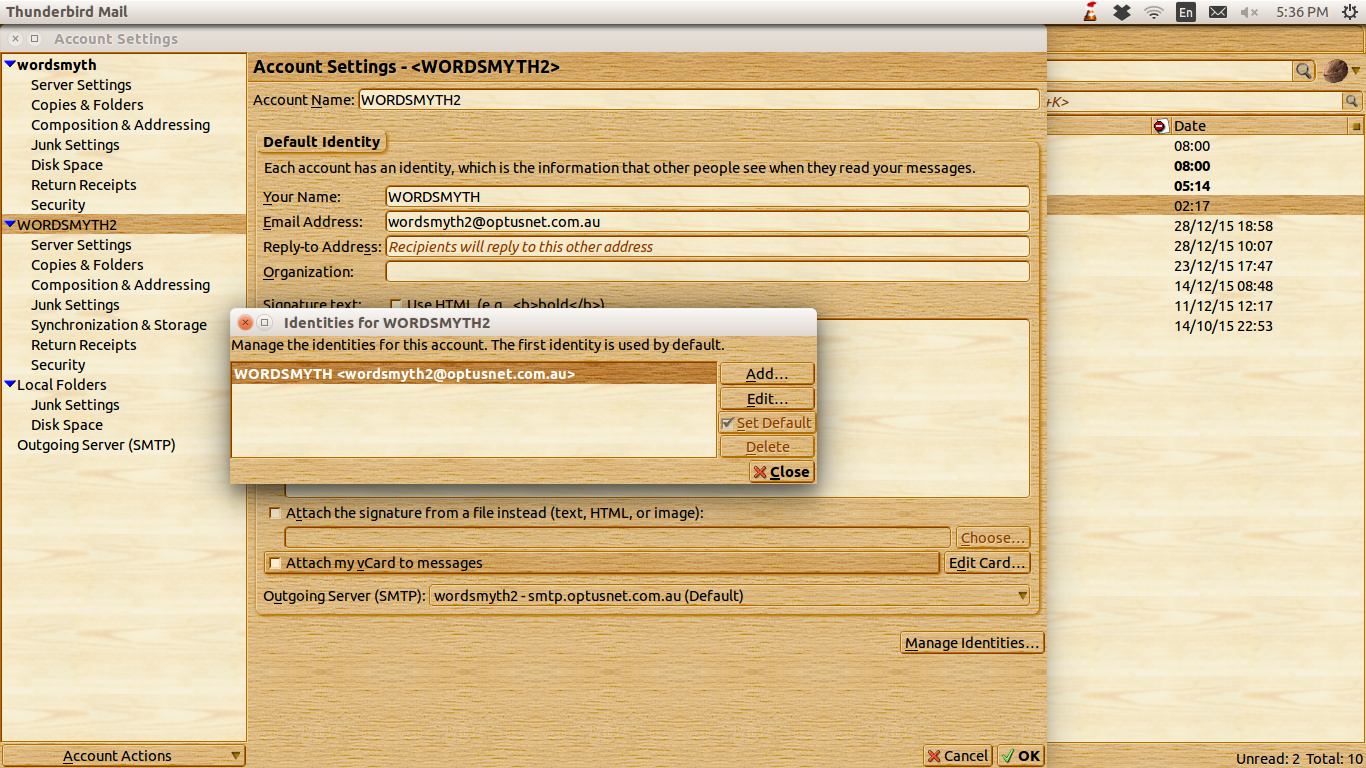 Hi, Toad Hall. Many thanks for your easy to follow instructions - they worked! I was confused by Zeno's comment that I couldn't delete a "default" account - when BOTH my accounts were marked as default. But lo! when I followed your instructions the old account was instantly removed. I'm not a a newbie - been using Linux exclusively for the past eight years - but I just couldn't get my head around this problem with TWO default accounts. Thanks again!