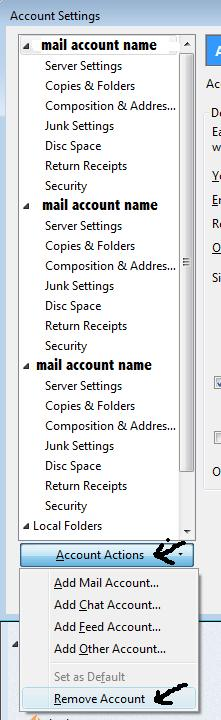 Please note - if that account has any emails stored in it, you will not be able to see those emails, so make sure you have moved any emails you want to keep into a suitable folder in 'Local Folders' mail account before removing the account.