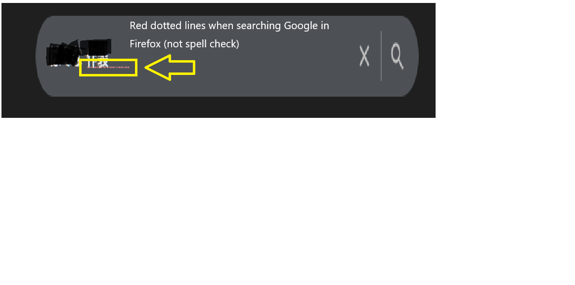 When I type in a Google search in Firefox, a red dotted line (not the wavy red line from Firefox's spell check; spell check is disabled) appears. What exactly is this red dotted line? Can I show or hide it in settings? Can I change the setting in about:config? Please help. It's very annoying.