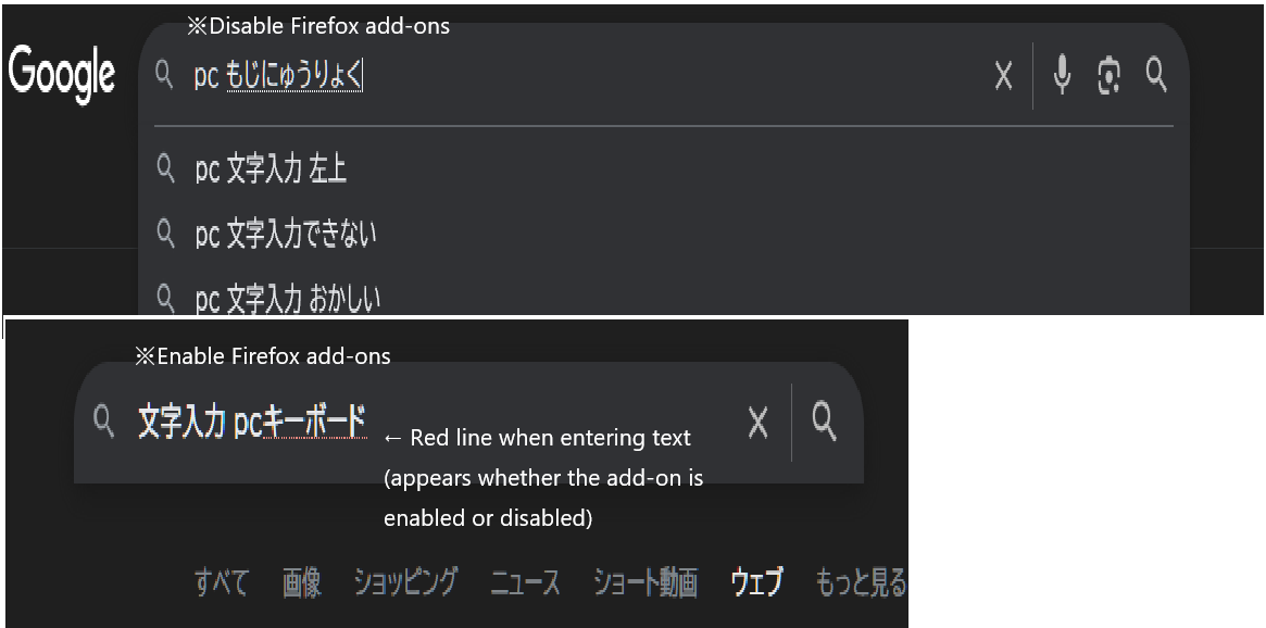 Whether the add-on is enabled or disabled, the red line appears when I type. The main language I use in Firefox is Japanese input.