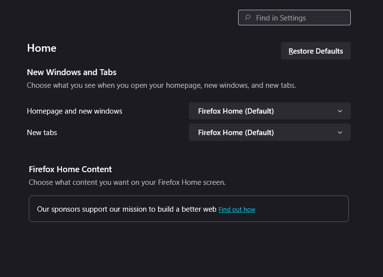 why my FIREFOX HOME CONTENT NO HAVE CHOICE SETTING ANYTHING MY MOZILLA HOME JUST EMPTY NO HAVE ANYTHING LA.
