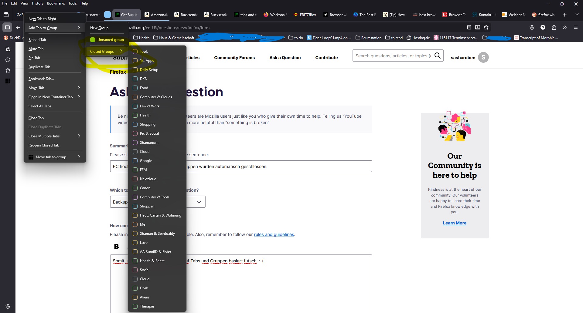 PC hochgefahren und alle Firefox Gruppen wurden automatisch geschlossen.
