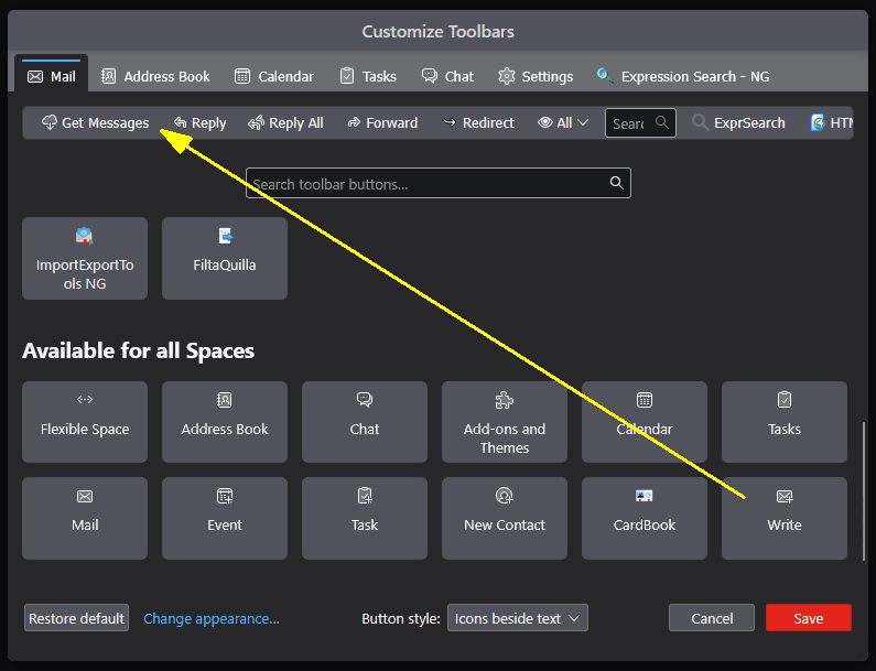 bold text how do I get back the 'write' button on Thunderbird mail bold textunderbird mail