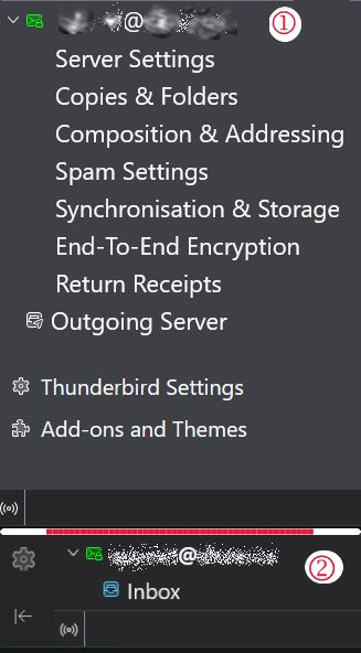 QUESTION: How may I fix it so that the last account shows all sub-sections of the account - i.e., Server Settings, Copies & Folders etcetera right on down to Online/Offline or at best, down to "Return Receipts" for the last account?