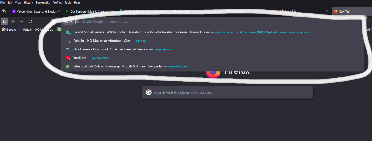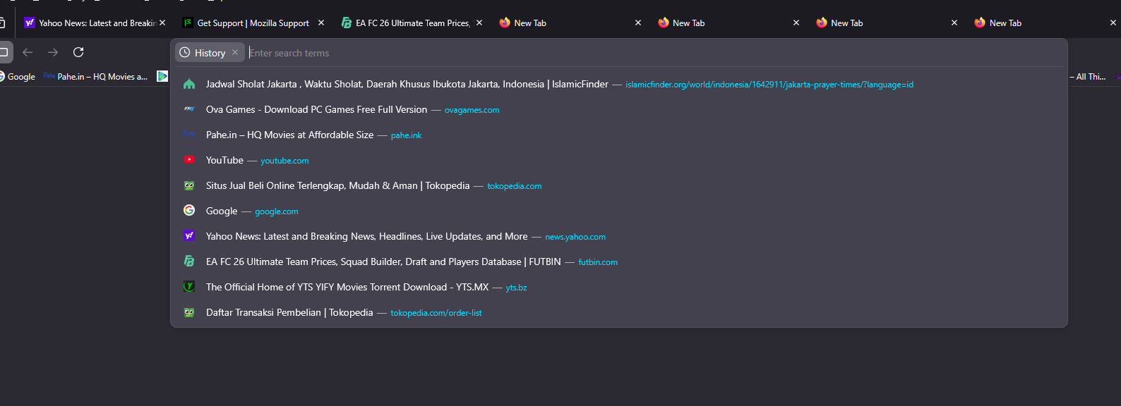 why suddnley my recent search bar on address bar is disapear. right now my search bar limited only have 5 website.