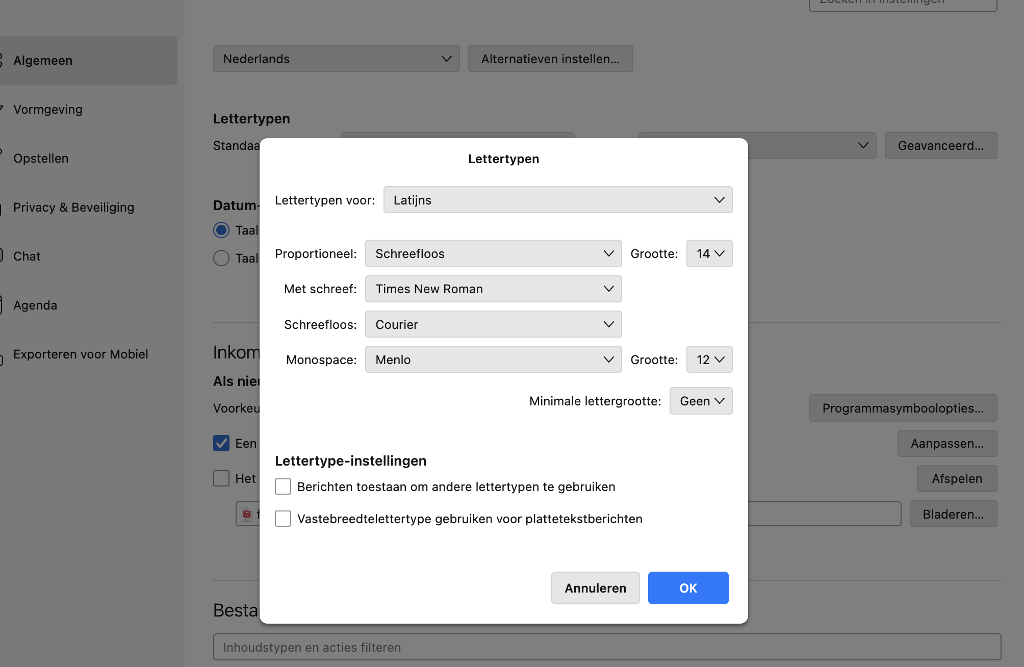 - Uncheck 'Allow messages to use other fonts'