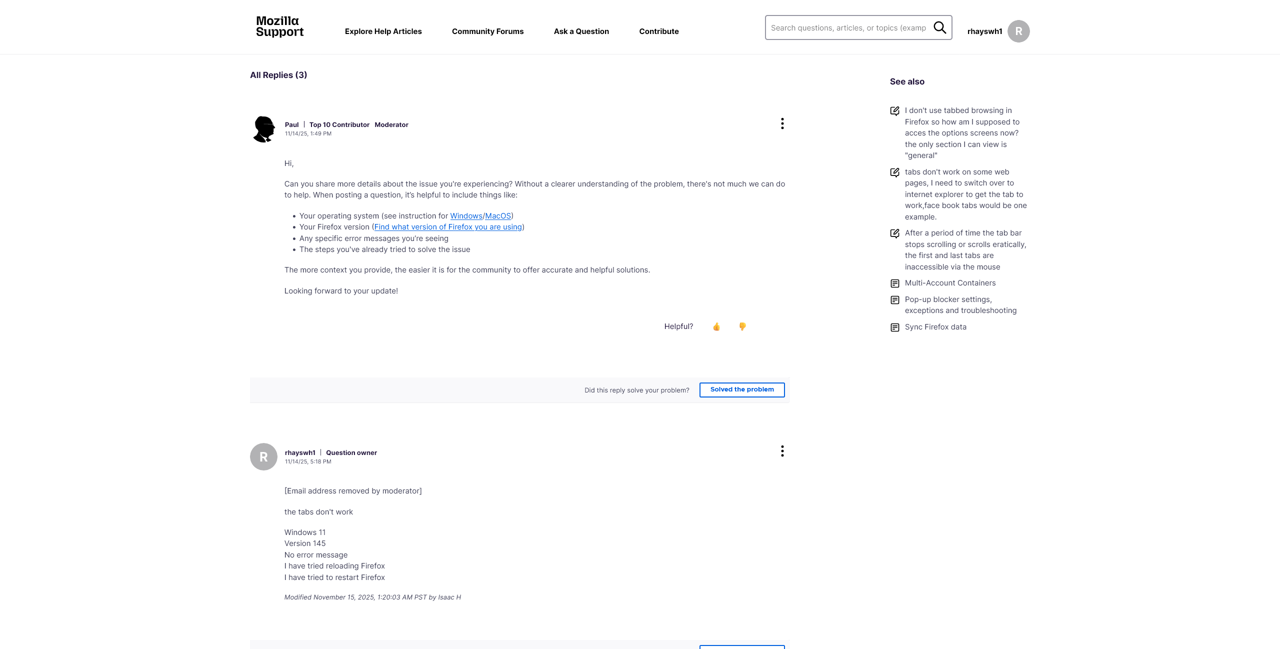 Windows 11 Version 145 No error message I have tried reloading Firefox I have tried to restart Firefox