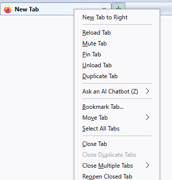 I would like to remove the first item from the Tab Context Menu, which is "Add Tab to New Group", and simply have "Reload Tab" as the first menu item.