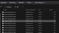 - Una vez abierta, haz doble clic en la carpeta Mozilla, a continuación en la carpeta Firefox y, por último, en Crash reports (Informes de fallos). Una vez dentro, haz doble clic en submitted (enviados).