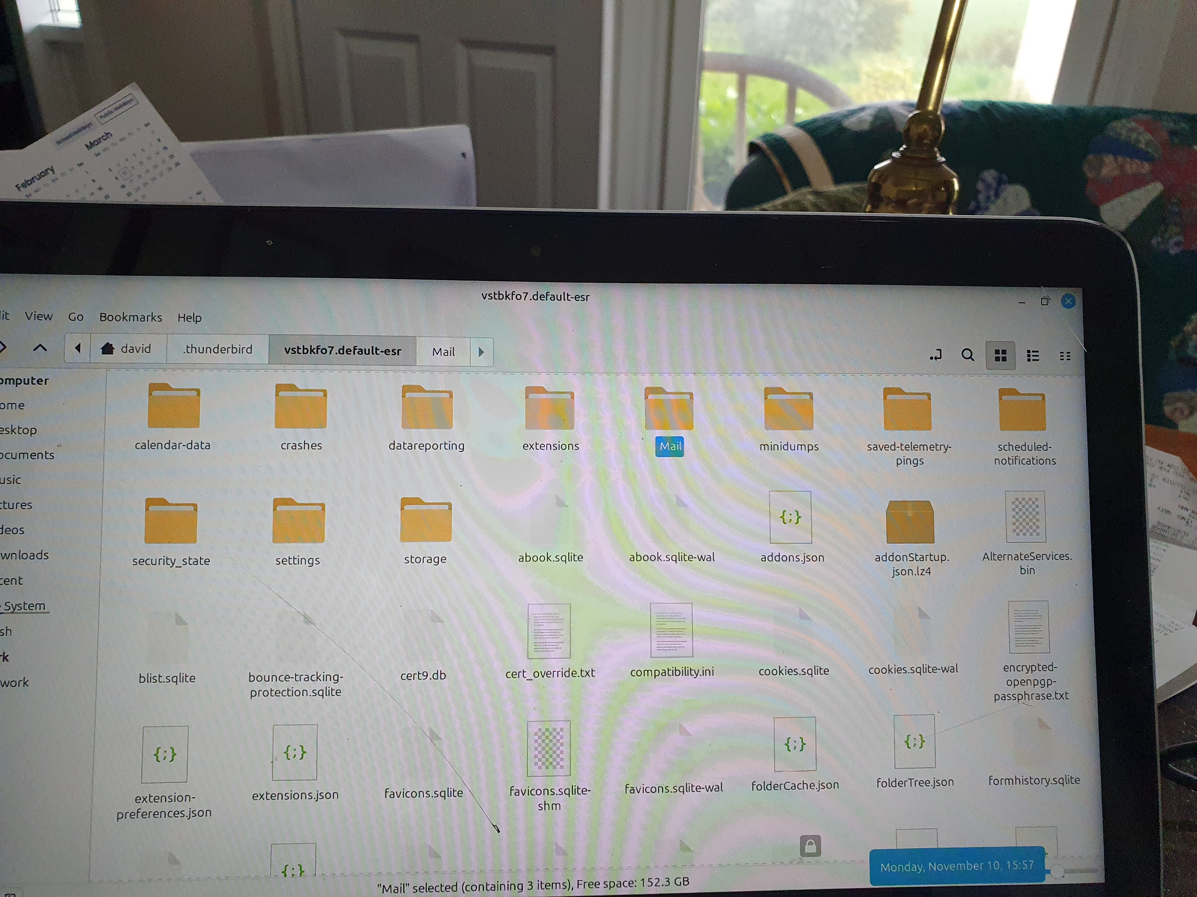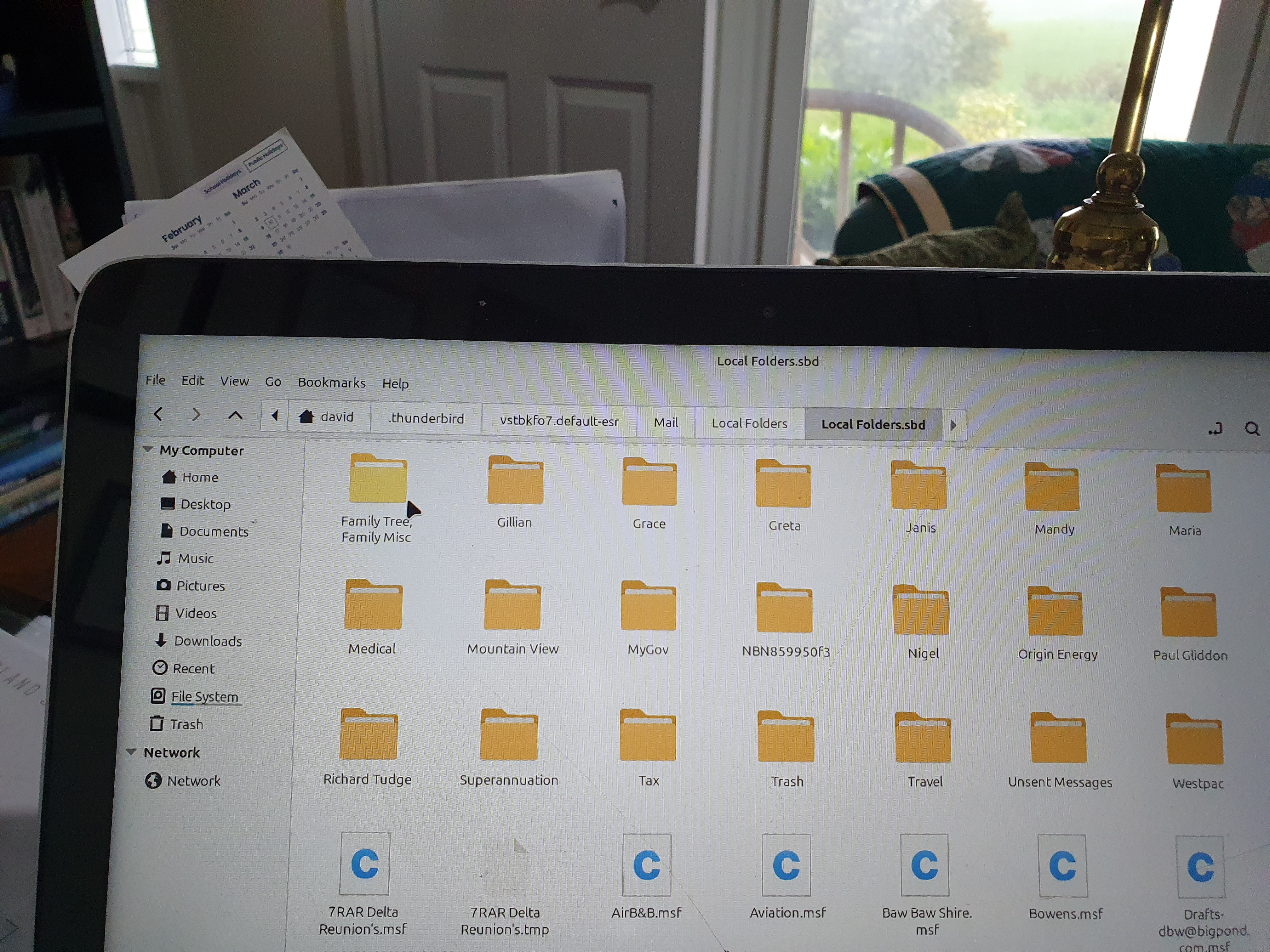 I have been poking around and opened the Profile Directory through help/troubleshoot. I opened mail and have four folders: Local Folders, mail.bigpond.com (my email provider), mail and Thunderbird local folder files.