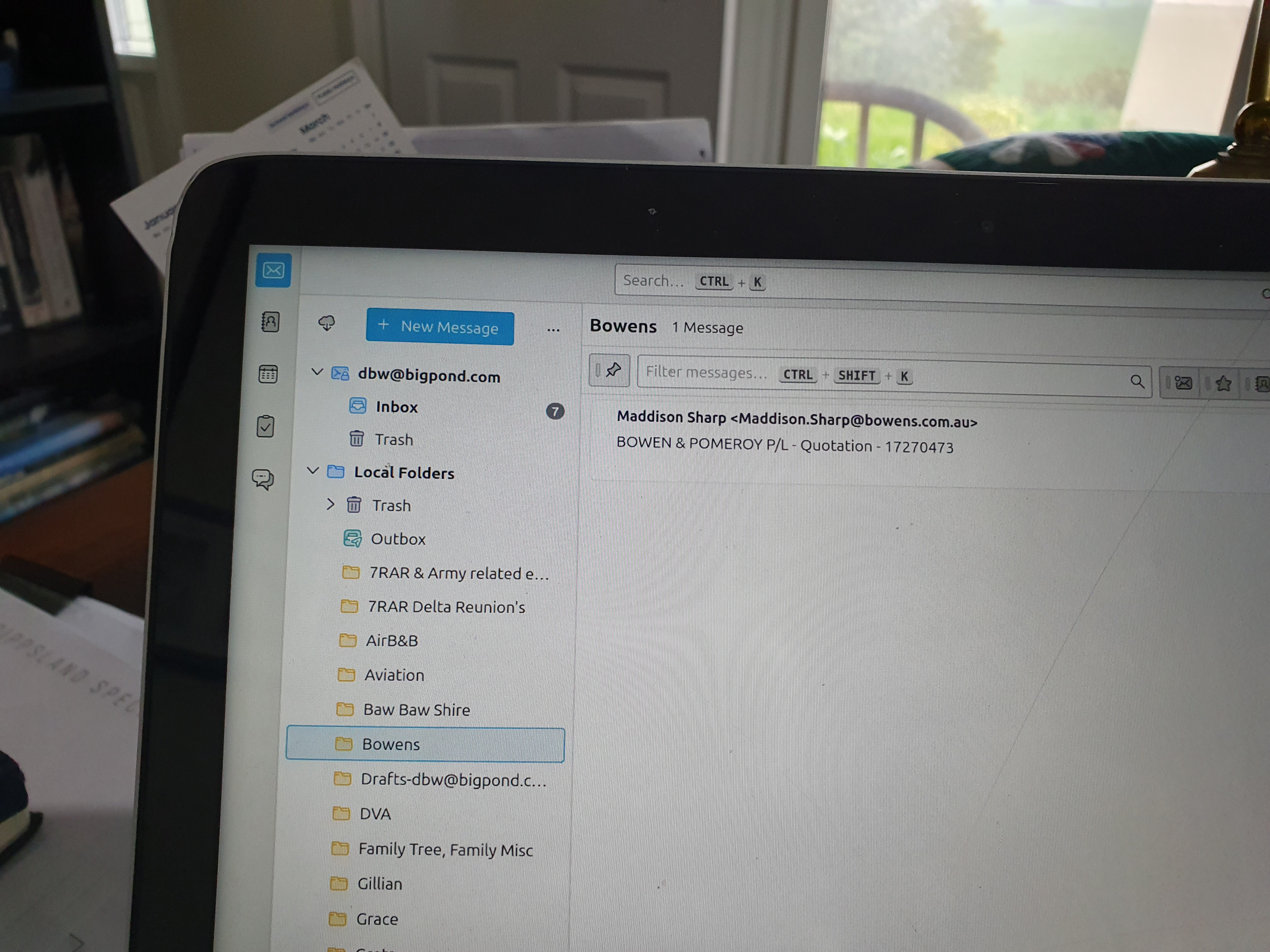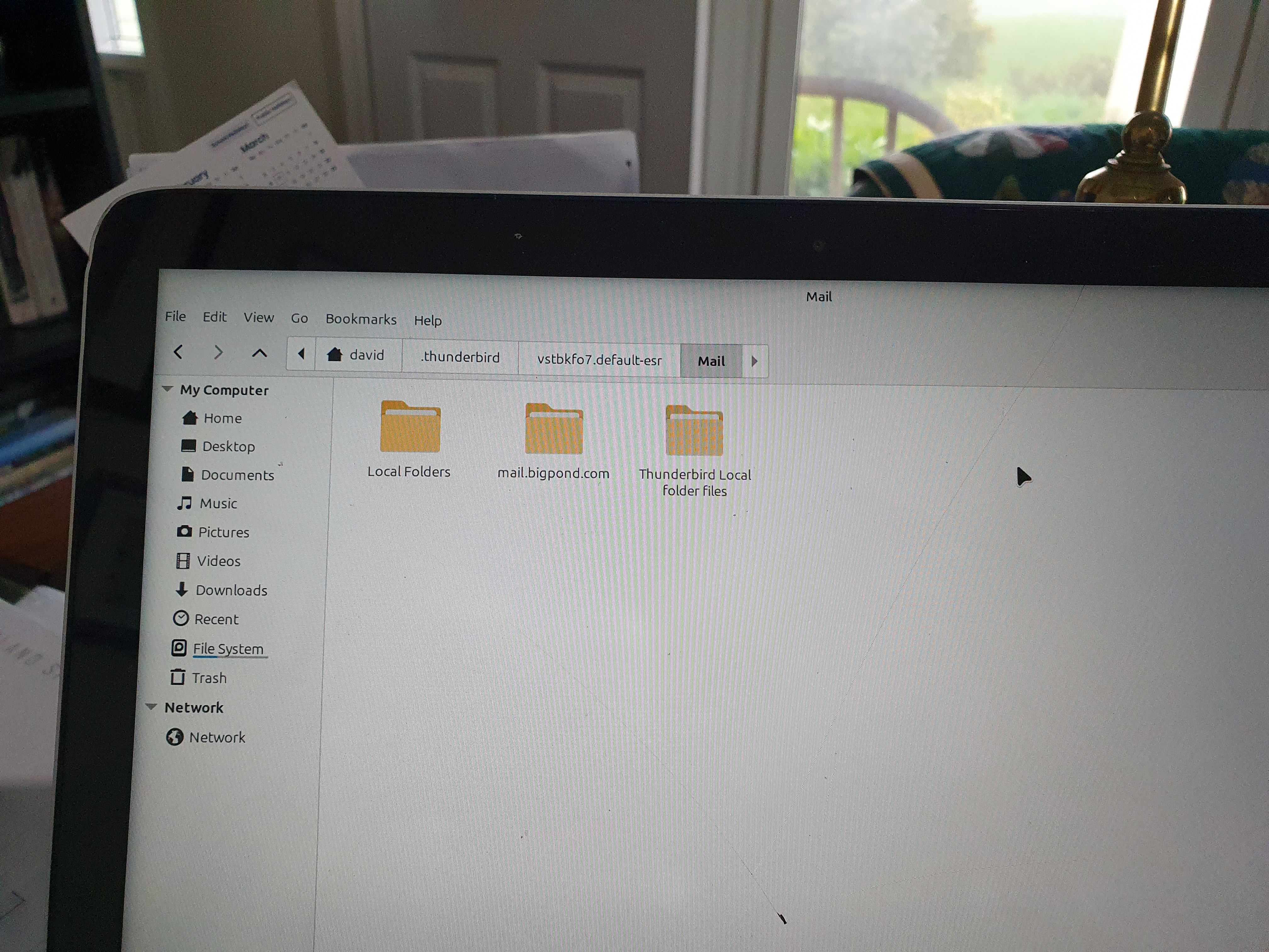 re :I opened mail and have four folders: 'Local Folders','mail.bigpond.com' (my email provider), 'mail' and 'Thunderbird local folder files'.