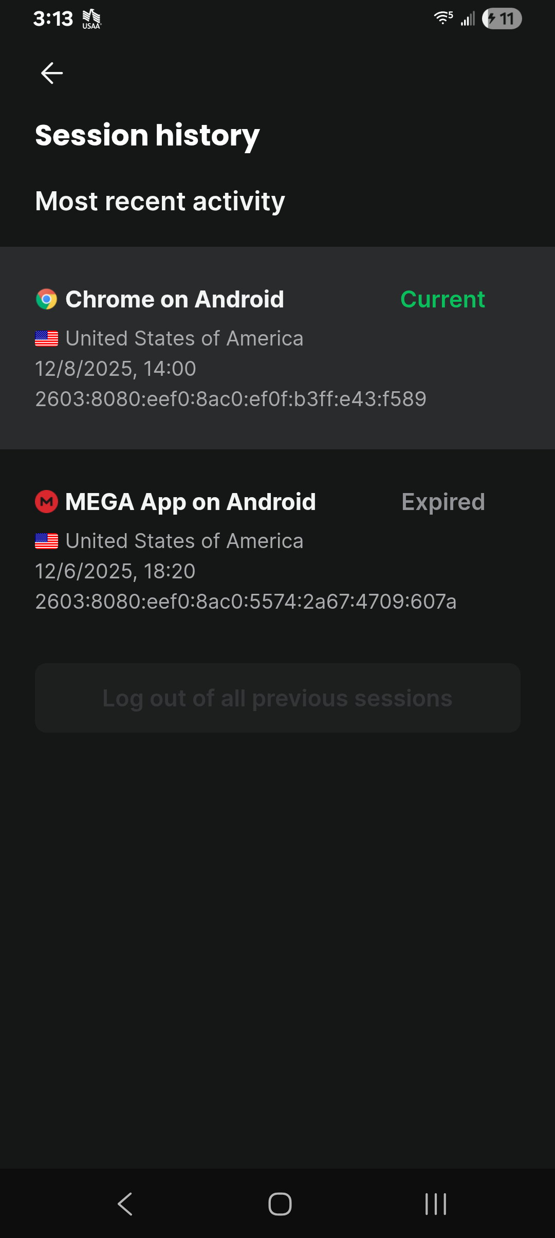 Today, using Firefox--or at least what i think is Firefox--i checed session history while logged into my mega.nz account. It lists 2 instances, one of which is for 3 days prior when I originally set up the Mega account using the Mega app, and the other is for yesterday when I entered the account using the FF browser--or, again, what i think is the FF browser. What's curious is that it shows i was using the Chrome browser, and that I'm apparently still using this browser as it's listed as the "Current" session. How can this be? While I have the Chrome app on my phone, I disabled it long ago and have never used it, and most certainly did not use it during the time and activities in question. I have long speculated that I have been hacked and that my phone is sometimes (always?) controlled by this hacker, though no solid proof. Assuming the hacker uses Chrome, could this be reflecting their using the Chrome browser, as opposed to the FF browser, which I'm currently using (or think im using)? In other words, is this the proof of a hack? Or is this a glitch within Mega, mistakingly listing Chrome as my browser?