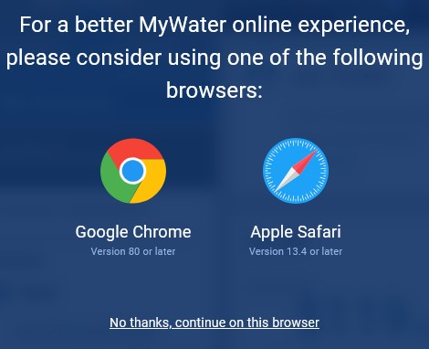 Being advised that a website may not work optimally using Firefox