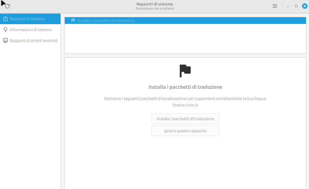 Salve a tutti, il mio s.o. eì linux mint e nei rapporti di sistema e' venuto fuori che manca il pacchetto di traduzione chiamato firefox-l10n-it che non puo' essere installato perche mancano le dipendenze. Sapete indicarmi una soluzione? Grazie a coloro che vorranno rispondere.