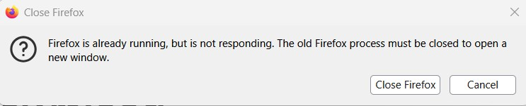 I can't open FIrefox. When I try to open it I get the following error message. "Firefox is already running, but is not responding. The old Firefox process must be closed to open a new window." I opened Task Manager and could not find any instance of Firefox or Mozilla running. I uninstalled Firefox and deleted all the files and folders having to do with Mozilla and Firefox. Then I reinstalled Firefox. I continue to get the same error message. I am running Windows 11 64bit on a Dell laptop. Any suggestions? Ray