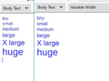 AS example: the image below shows on left side a normal setup where arial font is size 14 and where tiny is allowed as minimum font size 10, so small is 12, medium is 14, you get the idea. The one on the right has had the minimum font size changed to 14, so now tiny small and medium all look the same size.