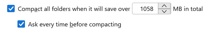 The 16.2 Gb and other numbers are the stated size of reduction that the compation needs to tackle. I have it set in Settings to only try compacting if the number is >1Mb See screen shot attached.