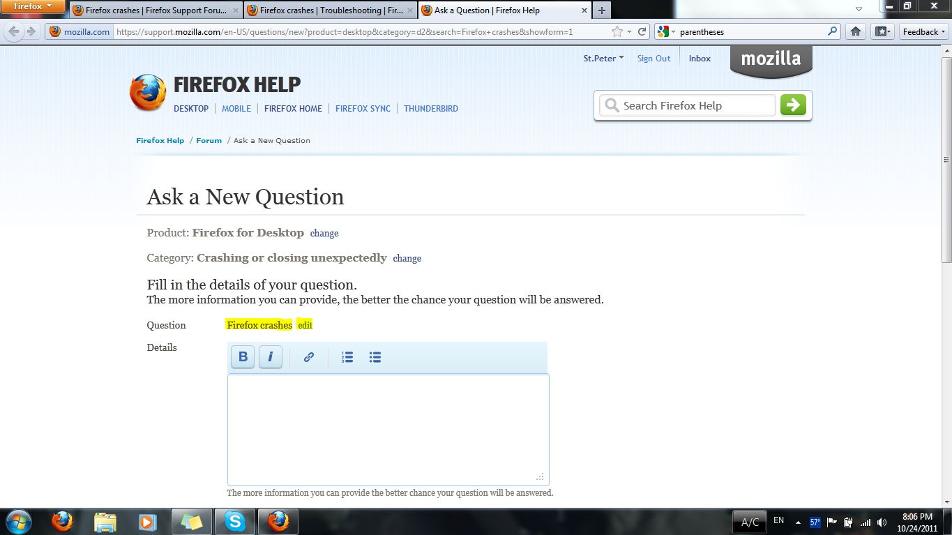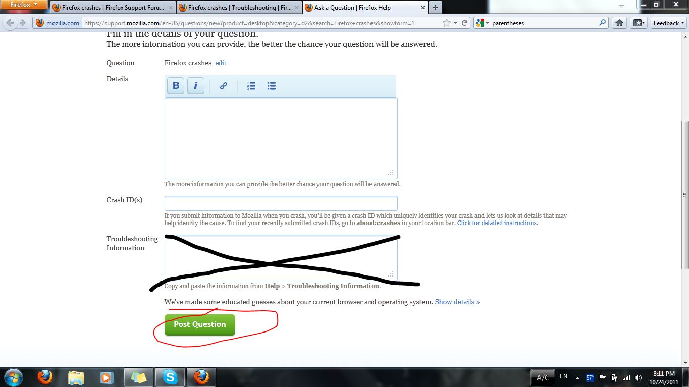 III. Click here to fill out an exclusive Firefox crashes forum question.