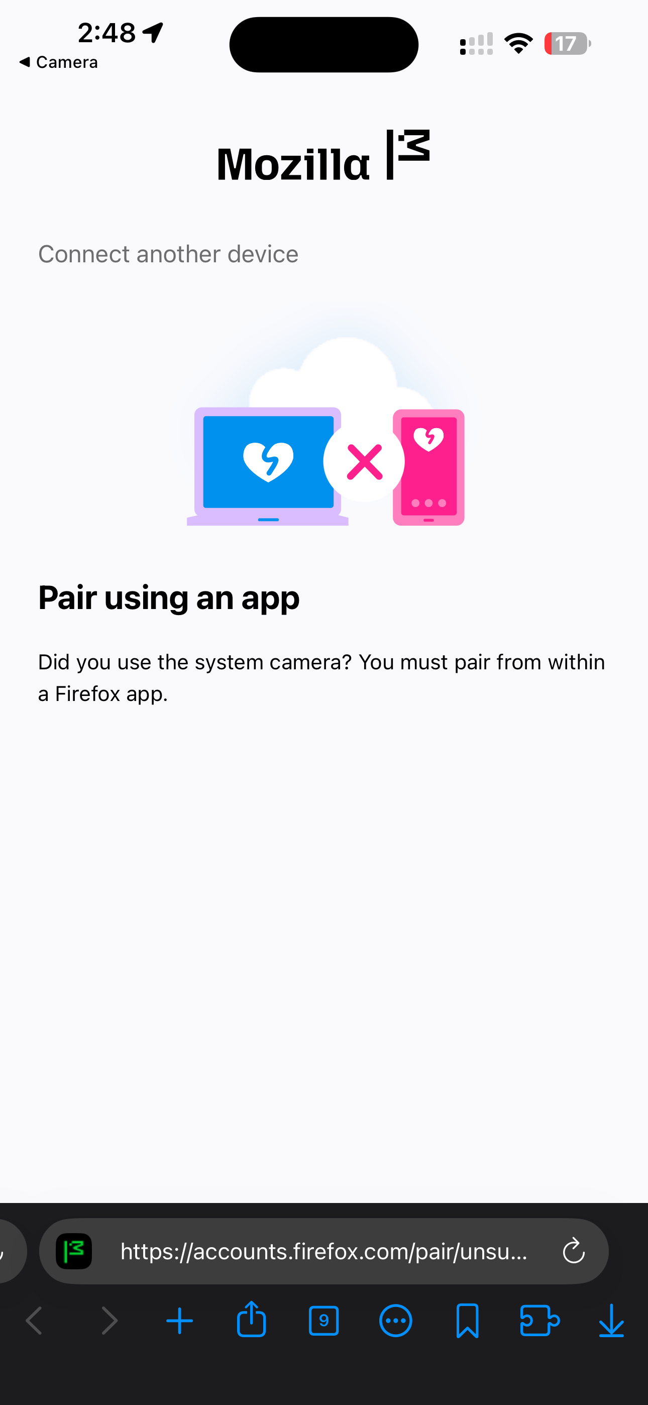 I can’t sync my iPhone to my website browsers, I can’t find the QR code scanner on my iPhone.