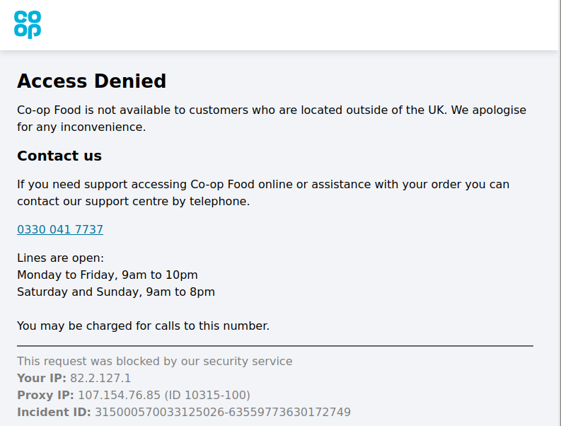 I am getting an access denied message with shop.coop.co.uk, but not with any other online shopping site.