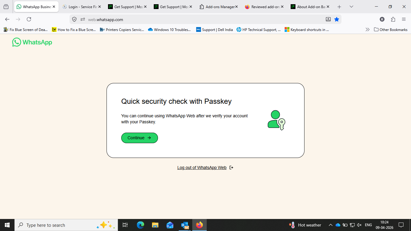 Since yesterday I am observing the issue while accessing Whatsapp which is asking for Quick security check with passkey and same was observed in Google which was resolved within few clicks but not Morzilla.