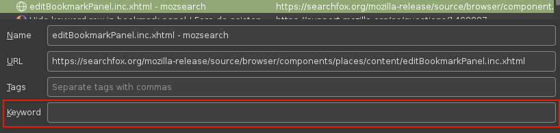 I just upgraded to FF 134 and can't hide the keyword row in bookmark panel.