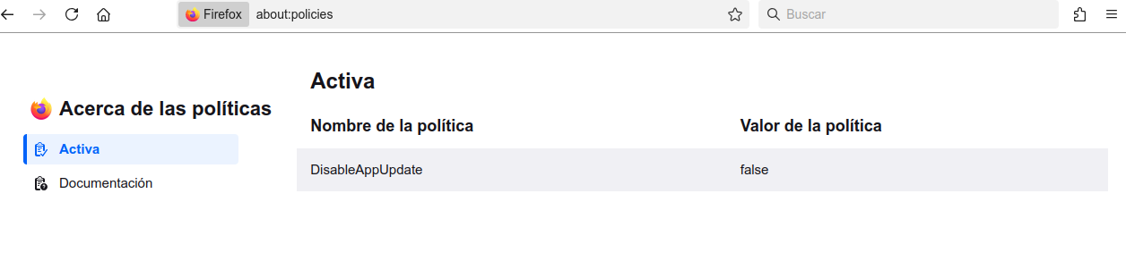 Gracias de nuevo, Gerardo. En las policies solo aparece una (adjunto imagen); la he cambiado un par de veces y todo sigue igual. ¿No hay algún parámetro en "about:config" que indique cual es esa 'organización' que está controlando mi Firefox? Por si acaso, ayer lo desinstalé y reinstalé pero no parece que haya borrado parámetros porque, nada más reinstalarlo, ya aparecían mis marcadores, etc. Se me ocurre que quizá no sea cuestión de Firefox sino del lanzador. He revisado el que tengo en el menú normal del sistema y no hay nada raro. Pero quizá sea algo del sistema operativo en un paso previo, antes de Firefox, justo cuando clico en un enlace: que 'algo' lo sustituya por ese enlace a Youtube... Pero no sé donde mirar esto. Igual pregunto en el foro de Linux.