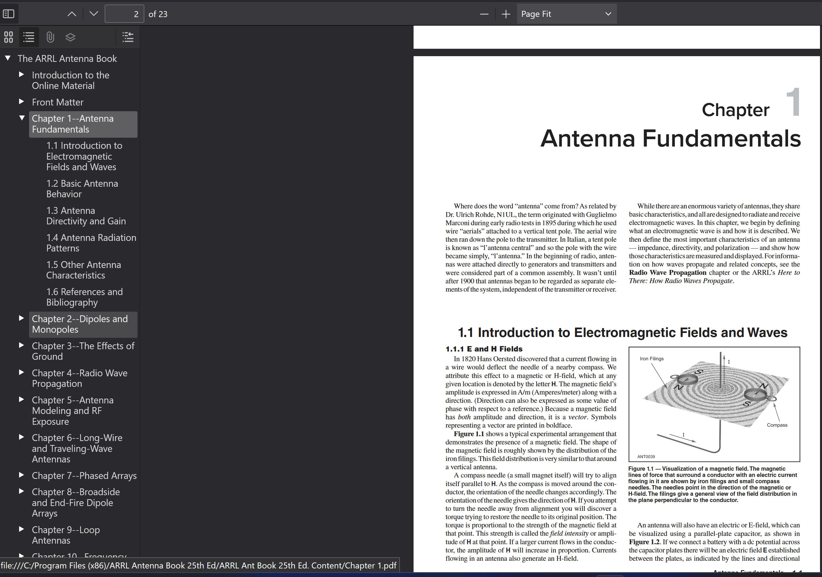 I am attempting to read through the ARRL Antenna book (https://home.arrl.org/action/Store/Product-Details/productId/2014032576), which is a series of locally stored PDF's with links to separate PDF's of each chapter. In Firefox, the bookmarks resolve to the currently open file, rather than the appropriate file, thus not working (see "Firefox_Incorrect_Behavior.png"). In Adobe Acrobat Reader, the links resolve to the correct chapter PDF in the <Program Files (x86)>/ARRL Antenna Book 25th Ed/ARRL Ant Book 25th Ed. Content/ folder.