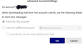 However, I soon found the culprit. Account A's Server Settings, Advanced.... were completely greyed out (and so effectively disabled) - see image attached.