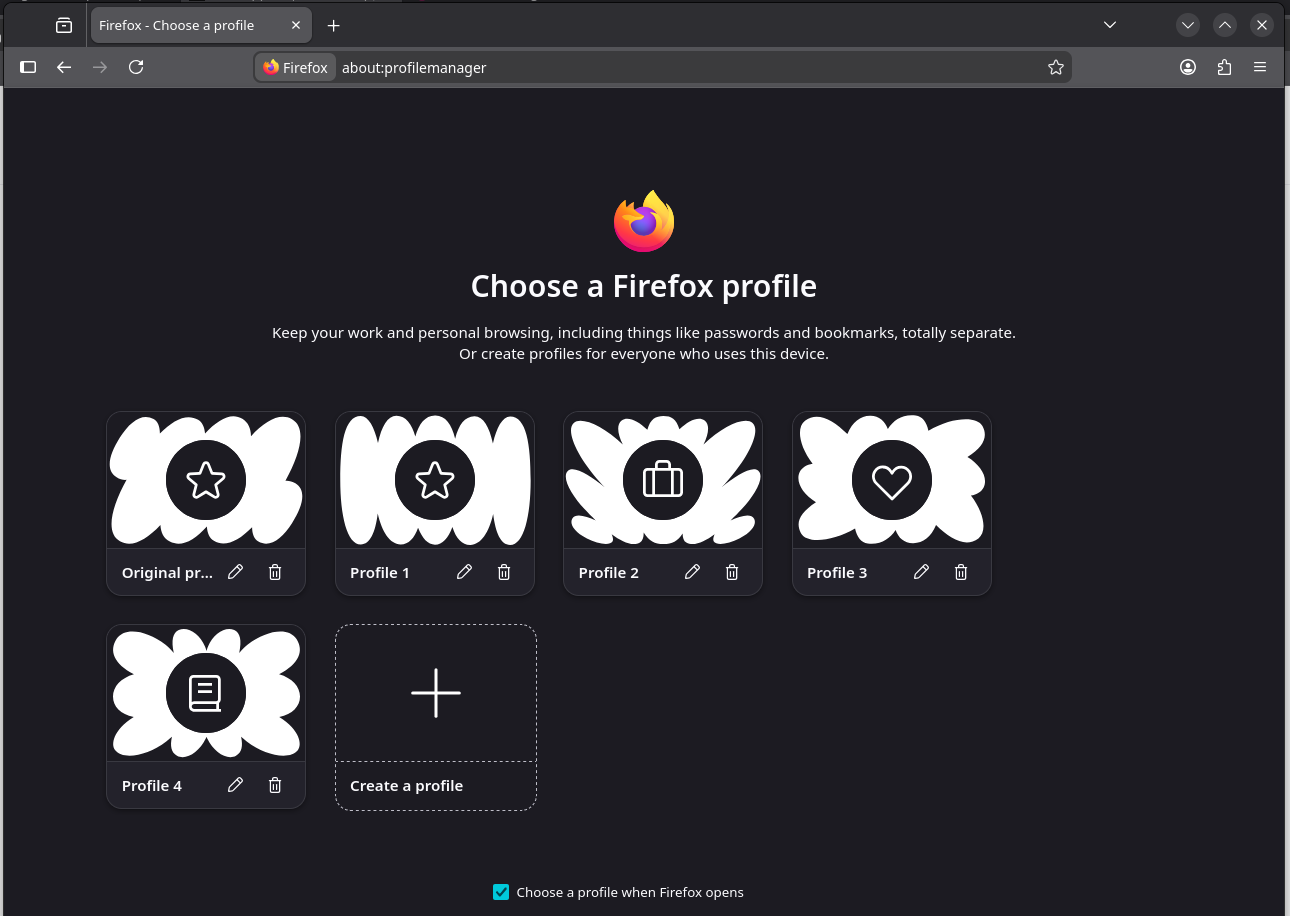 I have an issue where the following operations with the "new" profile manager don't work: - setting up a new profile (about:newprofile in the new profile is just blank) (a new profile gets created though) - deleting a profile (about:newprofile is just blank) - editing any profile that is not the original profile (about:editprofile is just blank) (works with the original profile) - the select profile interface from the account or menu button is blank when opening it from any profile that is not the original profile