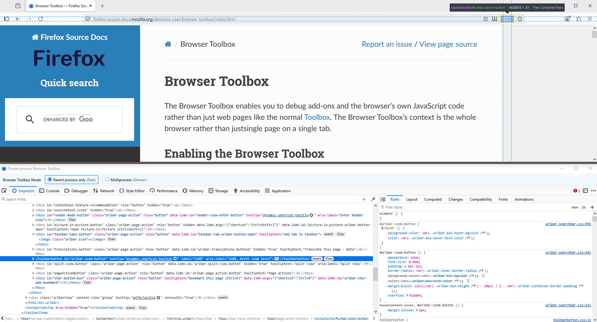 With the help of Browser Toolbox https://firefox-source-docs.mozilla.org/devtools-user/browser_toolbox/index.html