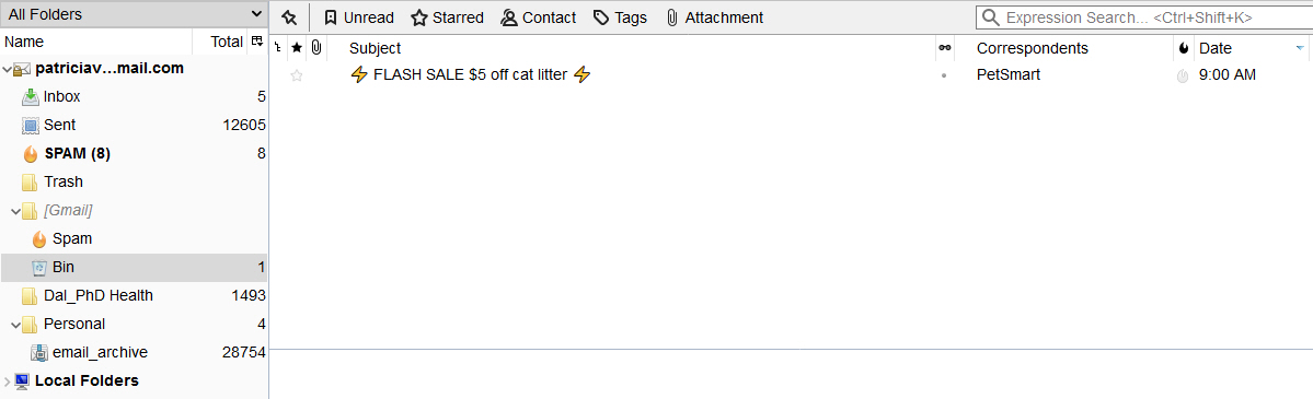 When I delete a message in Thunderbird, the email goes to my gmail bin instead of Thunderbird Trash. If I accidentally delete something, I have to search the gmail bin for it. I'm not sure why it's going there and if you can help me fix it, I would appreciate it. I also don't know what that local folders is at the bottom in the figure. I don't use that at all.