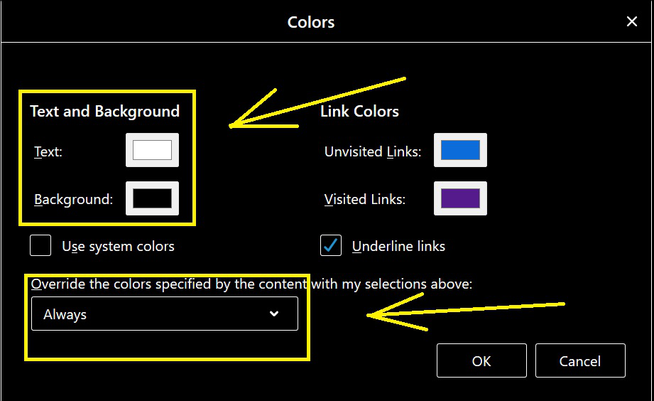 2. Dark mode seems to be broken out of the box. I have to force the text color scheme to be white with black background and enable it not just for high-contrast mode to read text of email. This doesn't seem right that the user has to monkey around with the color setting to get it to work. What am I doing wrong?