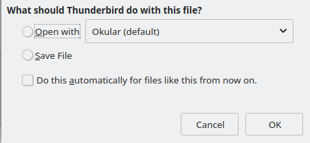 The "Open with Okular" is the PDF one - if I press enter in this prompt nothing happens