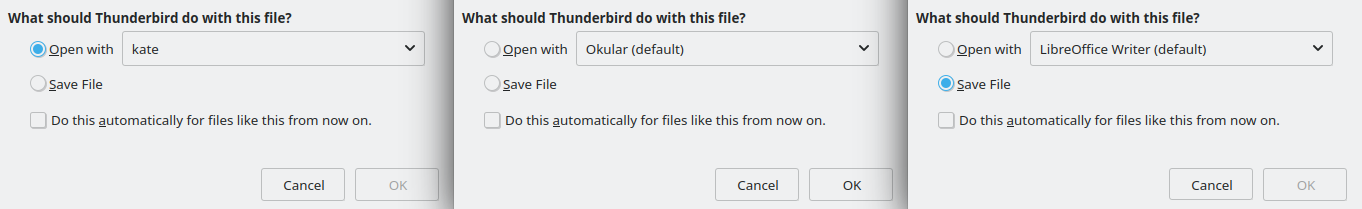 I see what you mean now. The settings for docx, txt, etc are only on my Thunerbird on Linux. My windows setup only has an option for pdf.
