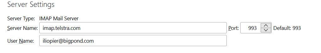 But I have at present: Incoming IMAP Mail Server Server name imap.telstra.com