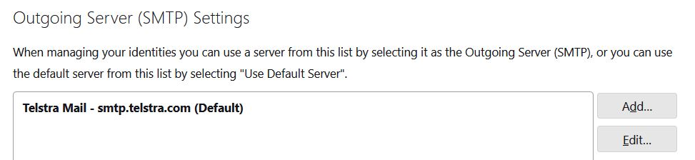 Outgoing Server (SMTP) Telstra Mail - smtp.telstra.com (Default)