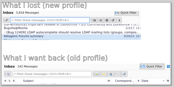 I created a new profile. All went well, but I lost my messages column headers. How do I get them back?