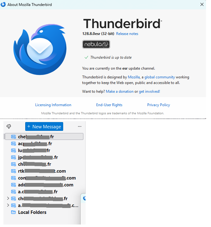Update Channel: esr User Agent: Mozilla/5.0 (Windows NT 10.0; Win64; x64; rv:128.0) Gecko/20100101 Thunderbird/128.8.0 OS: Windows_NT 10.0 19045 OS Theme: